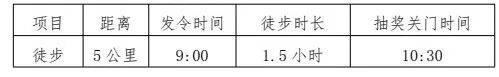 本次活动不计成绩,不排名次。按照规定路线、规定时间,完成徒步全程,在折返点领取中转牌(并领取参与奖),10:30在舞台处参加活动抽奖。